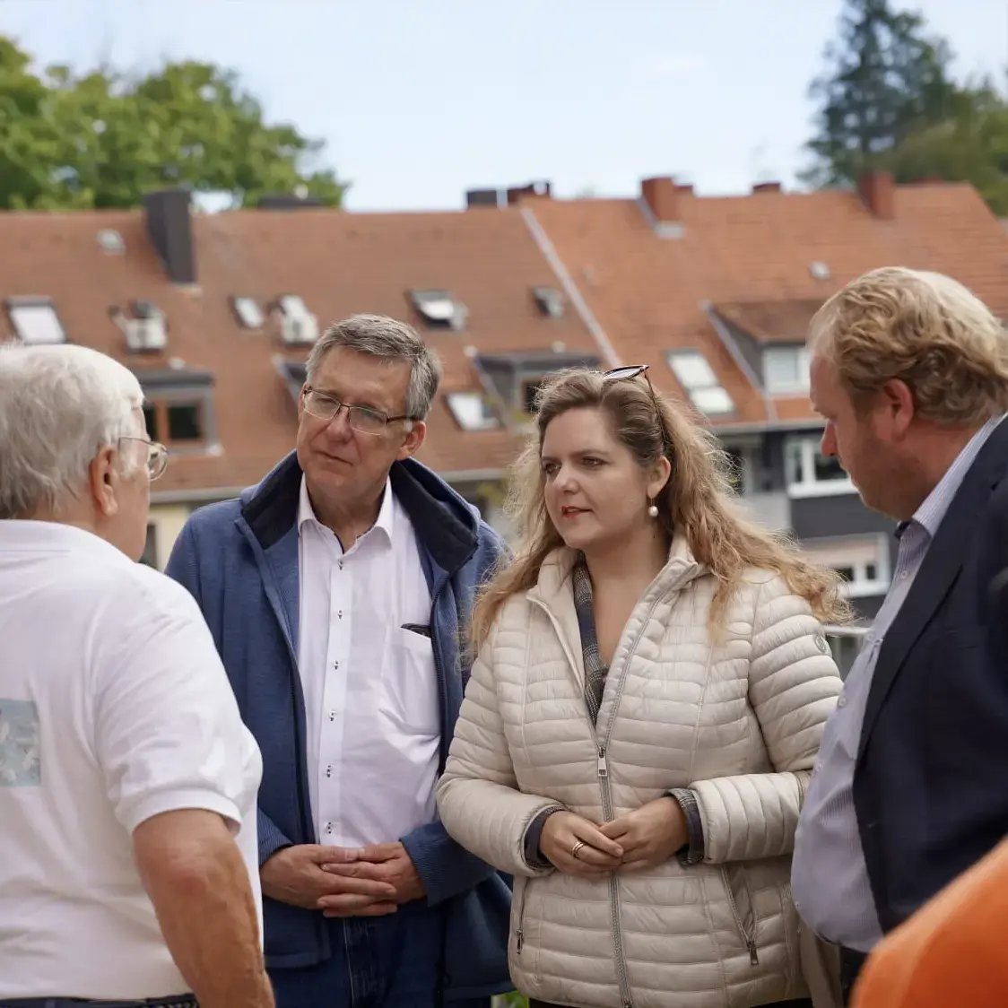 Die Veranstaltung war sehr gut besucht. Insbesondere die CDU-Fraktion der Stadt Bochum, vertreten durch (v.l.n.r.) Andreas Bracke, Fee Roth und Christian Herker, informierte sich bei Jochen Grothkop über die Arbeit und aktuelle Situation in Haus Auszeit.